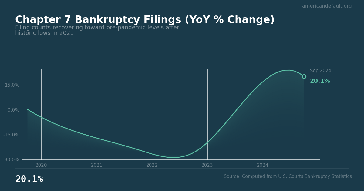 Chapter 7 filings up 20.1% YoY in FY2024 — rebounding from pandemic lows
