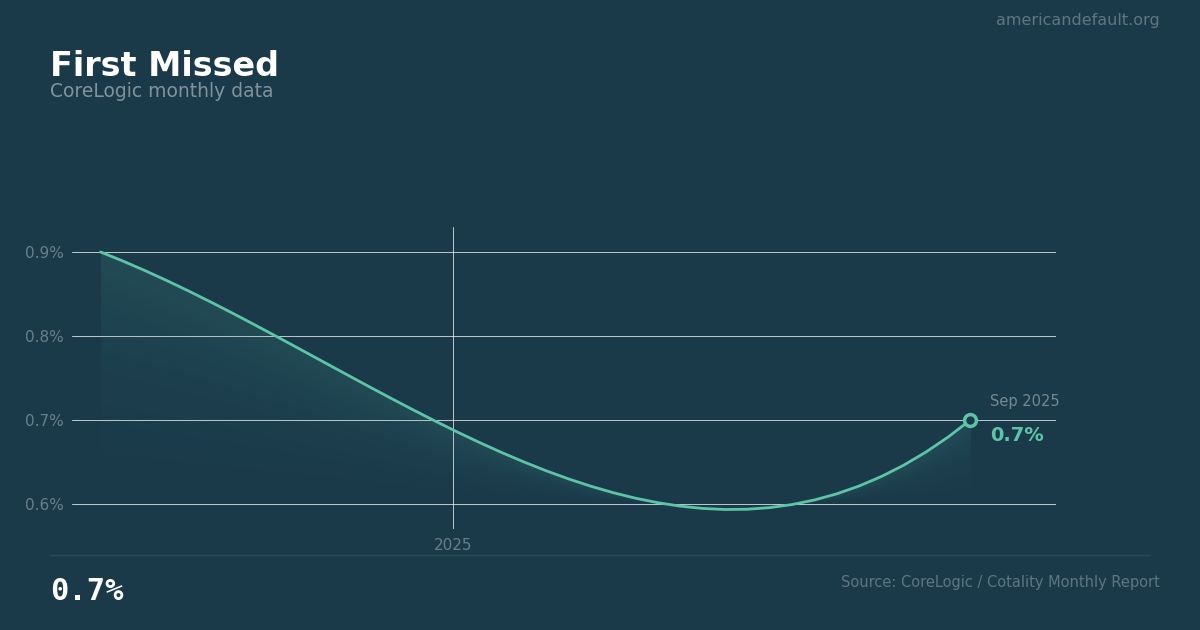 0.7% — down from 0.8% a year ago; early-stage mortgage trouble easing slightly