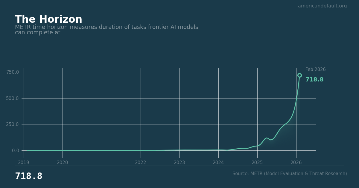 719 hours — up from 60 hours a year ago; AI can now work autonomously for over 4 weeks