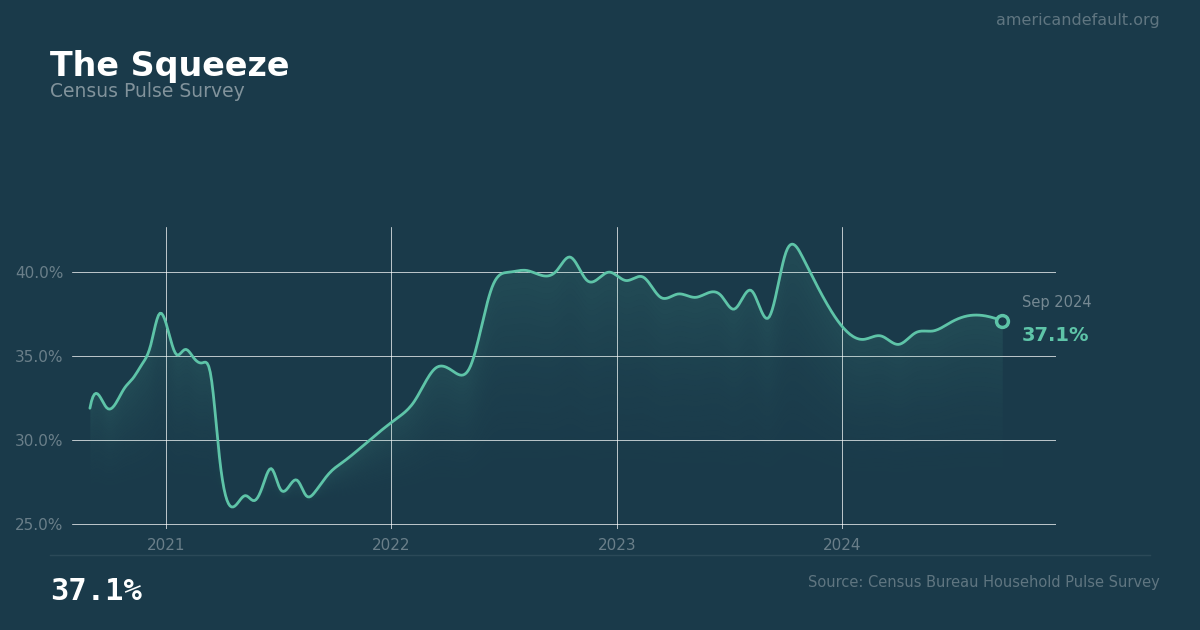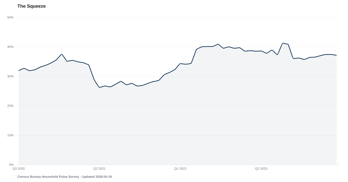 When nearly every dollar is spoken for, any unexpected expense becomes a crisis. The Buffer shows the personal savings rate at 3.6%, half the pre-pandemic average, and The $400 Test confirms that 37% of Americans still can't cover even a minor emergency with cash. These are not three separate problems — they're three views of the same squeeze.